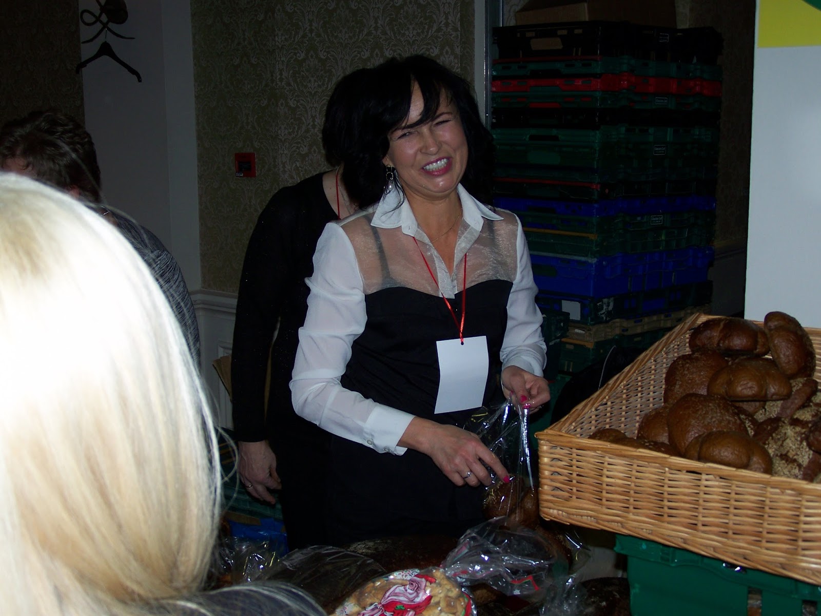 Angelė, mugėje prekiaujanti Dublino duona, batonais, mažomis duonytėmis,