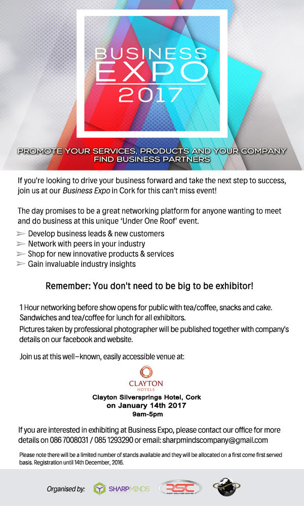 „Business Expo 2017” parodoje, kuri vyks 2017 metais sausio 14 dieną Cork,