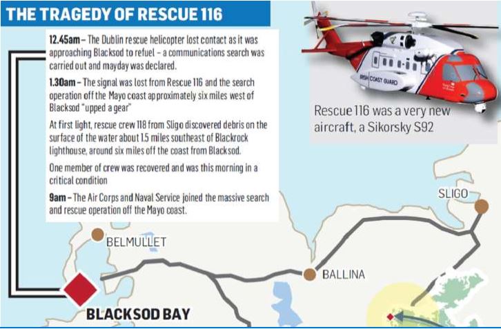 pakilo iš Sligo, jam pavyko aptikti sudužusio sraigtaspario nuolažas maždaug už