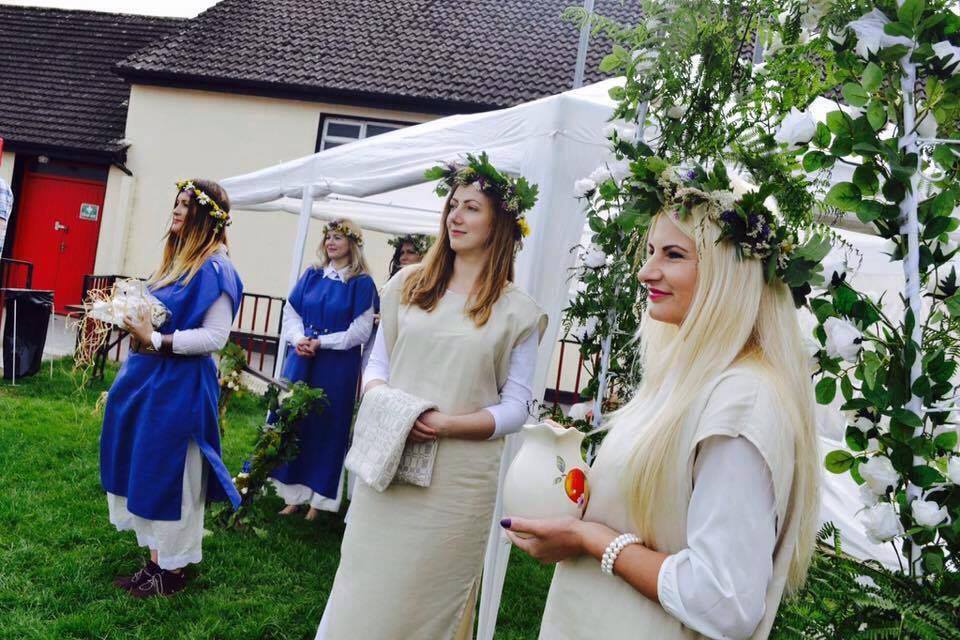 prie vartų pasitiko vaidilutės, laikydamos ąsotį su nuo žolynų surinkta rasa.